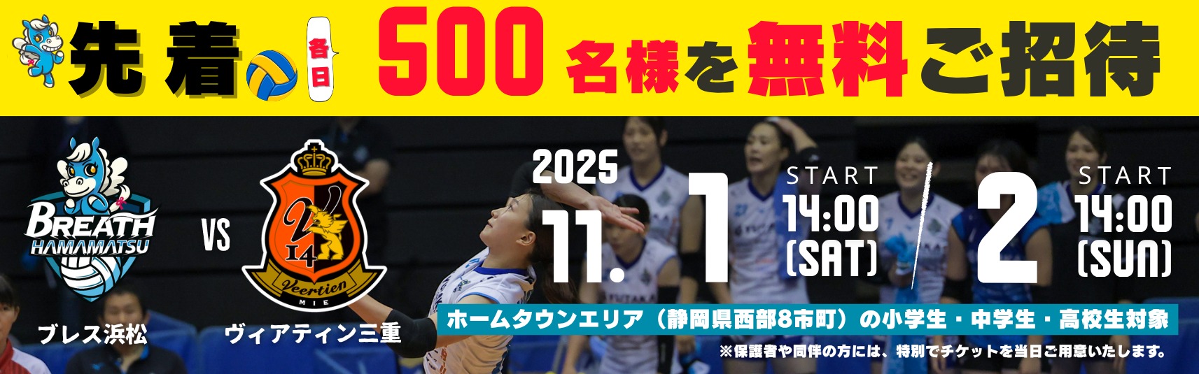 【お知らせ】2025‐26ブレス浜松ホームゲーム第2戦に静岡県西部8市町の高校生以下無料ご招待!!