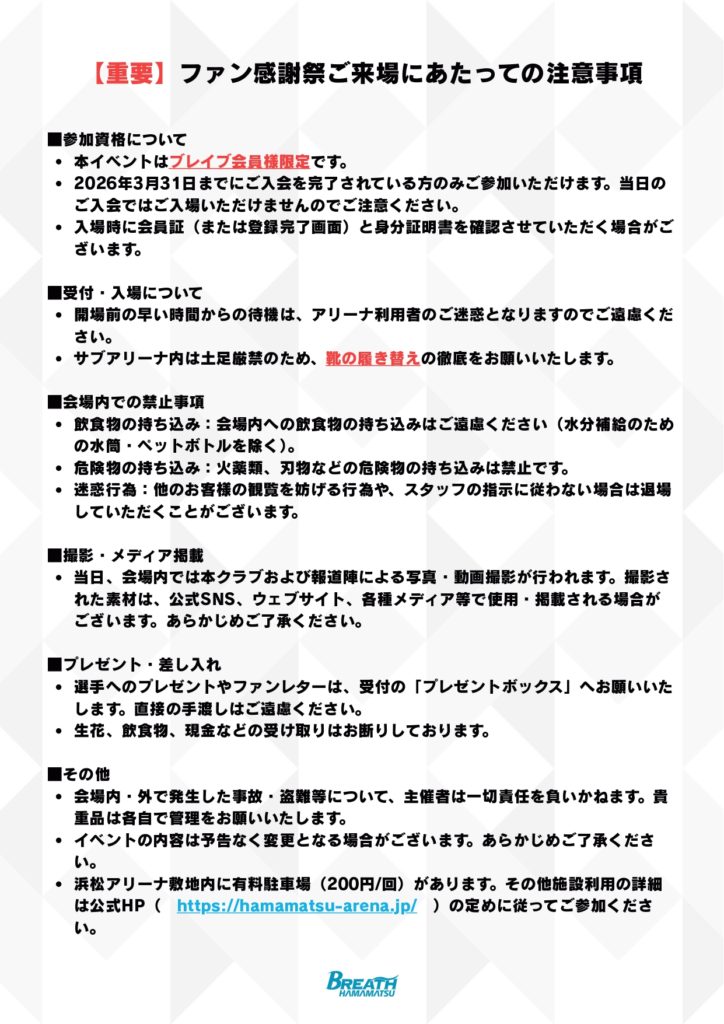 【お知らせ】ブレスフェスティバル2025-26 詳細決定!!!@浜松アリーナ