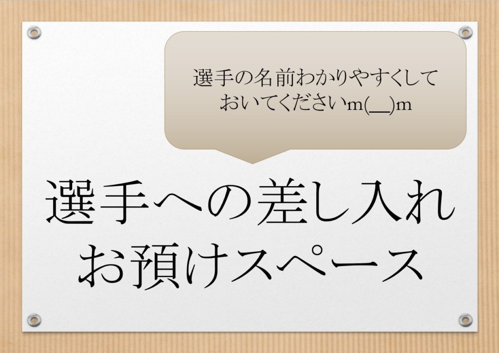 ※選手へ直接の差し入れ・プレゼントは禁止→入場前に「屋外チーム受付」で預ける。