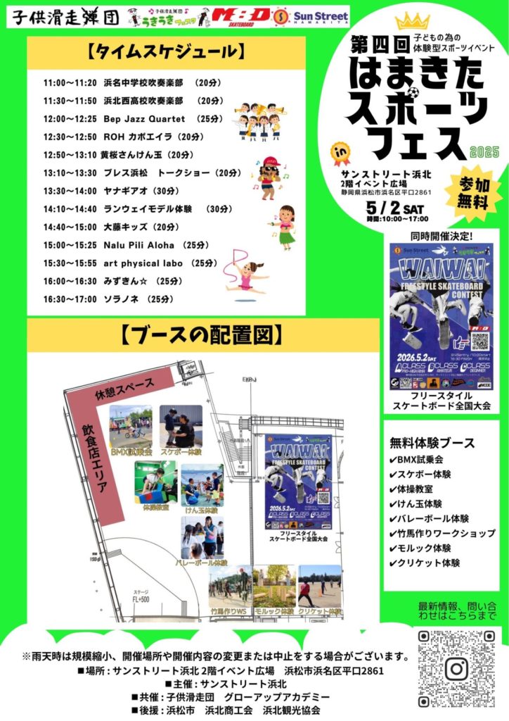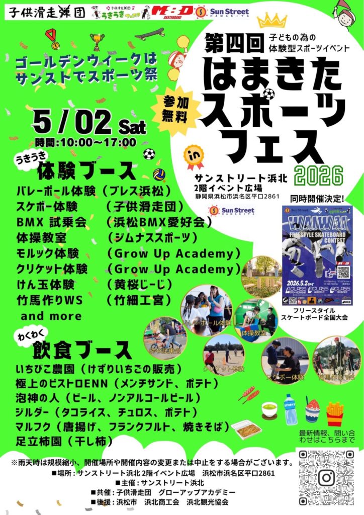 5月2日(土)にサンストリート浜北で開催される、「第四回はまきたスポーツフェス2026」に参加いたします。