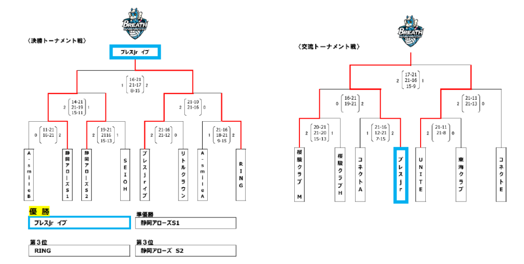 今後もトップチームの「ブレス浜松」はじめ、ブレスジュニアへの温かいご声援よろしくお願いいたします。