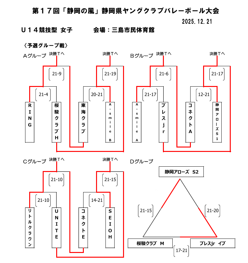 去る12月14日(日)に静岡県三島市にて開催された「第17回「静岡の風」静岡県ヤングクラブバレーボール大会」に