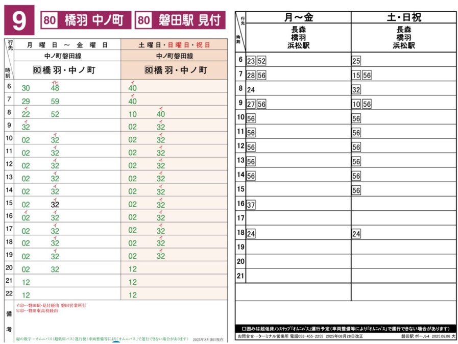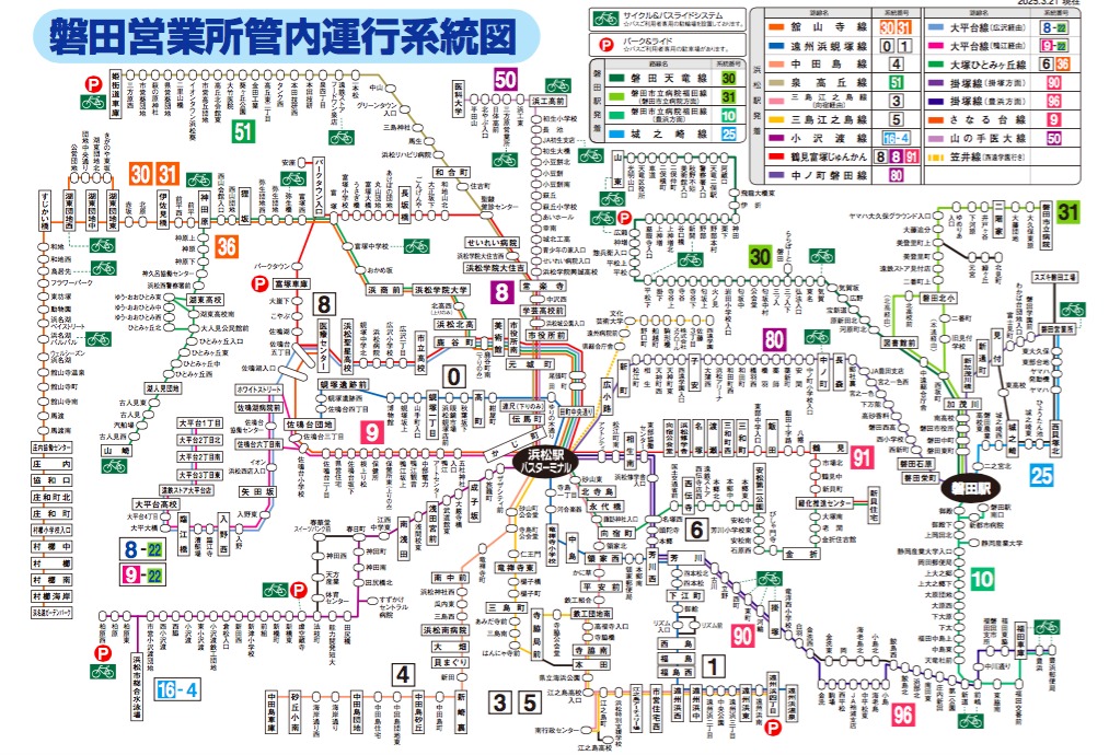 ●バス:浜松駅バスターミナル9番乗り場 遠鉄バス・80「磐田営業所」または「中ノ町」行きに乗車し、「浜松アリーナ」下車 (所要時間15分、270円)