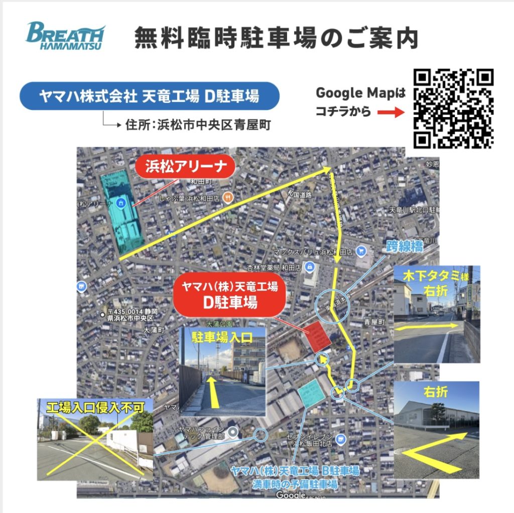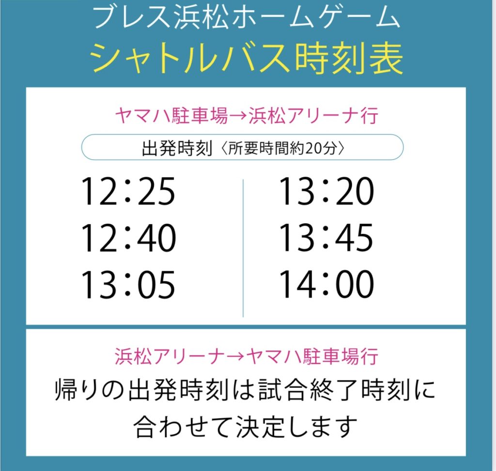 当日ヤマハ株式会社⇄浜松アリーナ間で無料シャトルバス運行予定