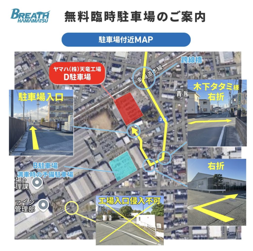 ●ヤマハ株式会社 天竜工場 駐車場 (無料)※台数制限あり