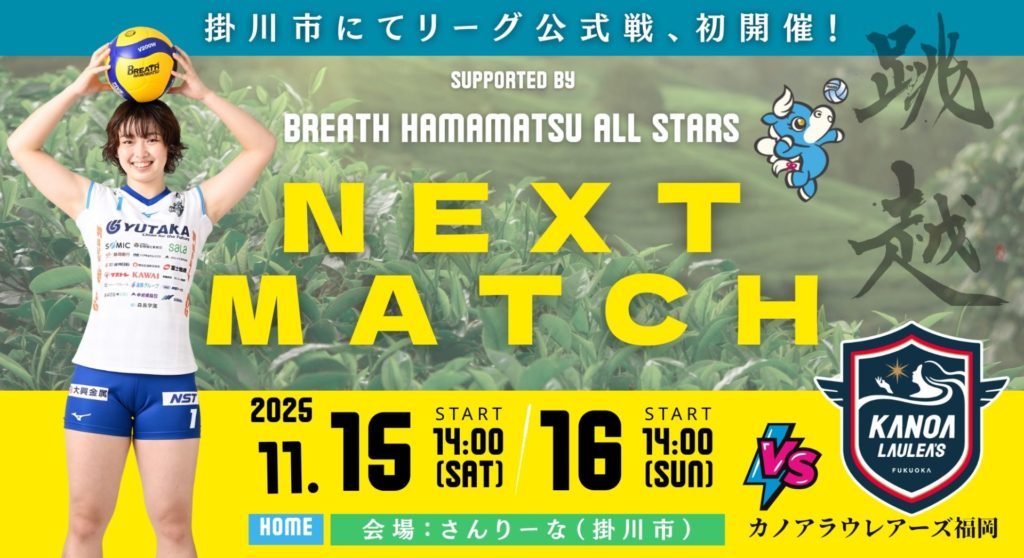 【11月15日(土)、16日(日) vs カノアラウレアーズ福岡 掛川大会 supported by BREATH HAMAMATSU ALL STARS】ホームゲーム情報